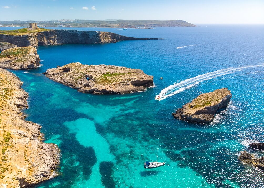 Next up we have Comino. Home to the famous Blue Lagoon, this stunning island is mostly uninhabited, and it makes for the perfect day trip during your holiday. The Blue Lagoon will be the highlight of your visit to this gorgeous island with its white sandy beaches and the clearest turquoise water you will ever see. The island is also considered a diver’s paradise with twelve recognised diving sites dotted around its coastline.